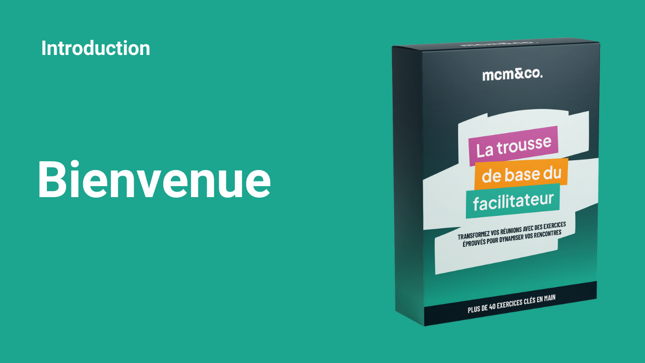 Félicitations ! En vous procurant La trousse de base du facilitateur, vous venez de franchir une étape clé pour renforcer l’impact de vos ateliers et réunions.